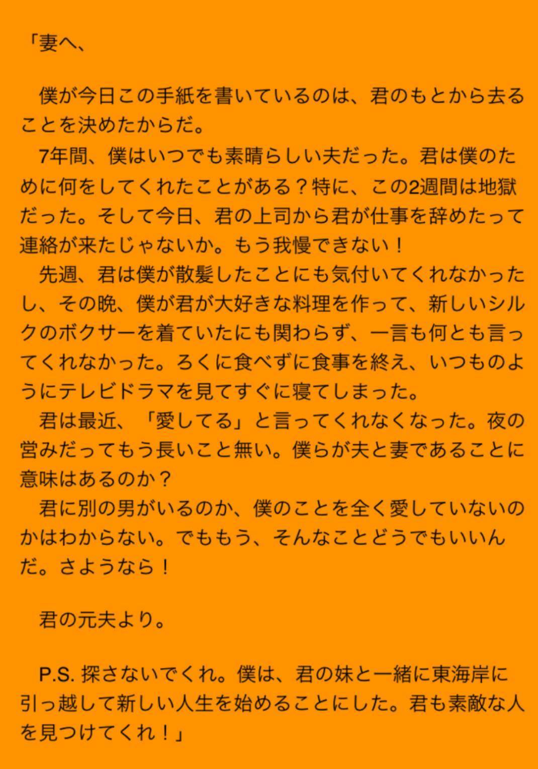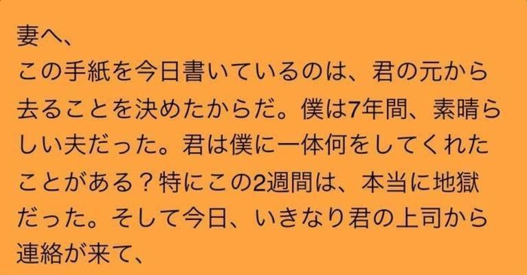 ご主人が、奥様に「君はよくない妻だった」と、